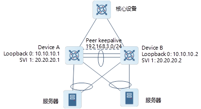 为增强M-LAG设备间数据传输的可靠性,同步数据使用TCP传输,需要在Peer Link链路之上配置一个SVI口,并配置M-LAG主从设备间三层可达,用于设备间同步数据。