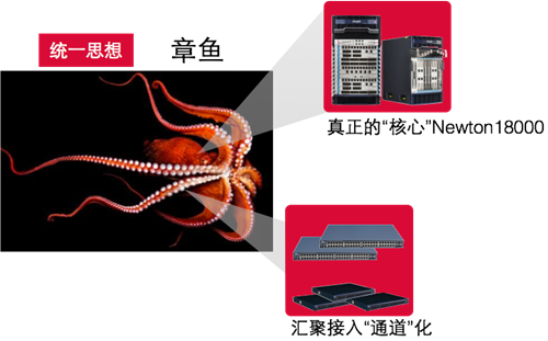 应对的办法:将原来分布在汇聚、接入的功能、策略都上收到尊龙时凯Newton18000系列核心交换机,对整个网络的管理都在核心设备上部署,汇聚、接入节点仅作为数据传输的通道。升级、替换、部署、维护变得及其简单!